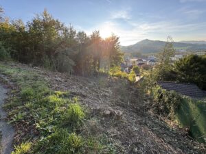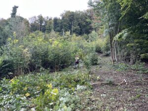 Die Grünfläche wurde von übermässigem Bewuchs befreit und vorbereitet, um Platz für die neuen Strukturen und Pflanzungen zu schaffen.