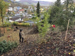 Ohne menschliches Eingreifen würde die Fläche natürlich verwalden und ihren Charakter als offene, strukturreiche Grünfläche verlieren. Die regelmässige Pflege der gepflanzten Sträucher und der gesamten Fläche ist daher entscheidend für den langfristigen Erfolg des Projekts.